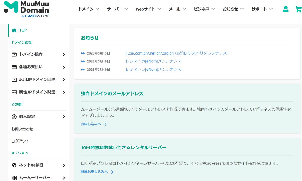 独自ドメインを取得する際、日本で人気のサービスの一つが ムームードメイン(MuuMuu Domain) です。